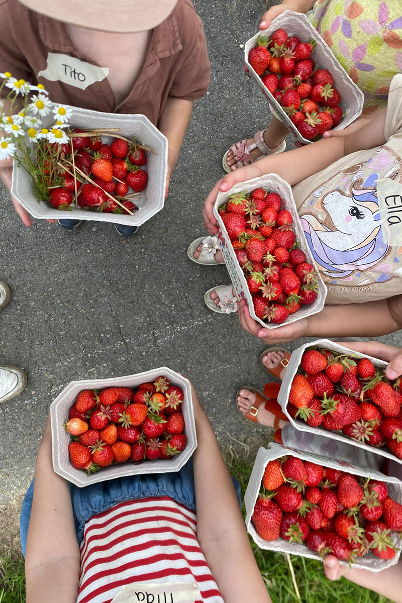 Dreckige Hände, leuchtende Augen und glückliche Kinder – so fühlt sich Bauernhof an. Kinder aus Essen und Umgebung können diesen bei uns hautnah erleben: Tiere füttern, Obst und Gemüse ernten, die Natur entdecken und spielerisch lernen, wo was wächst, wie Lebensmittel entstehen und was bei uns heimisch ist.